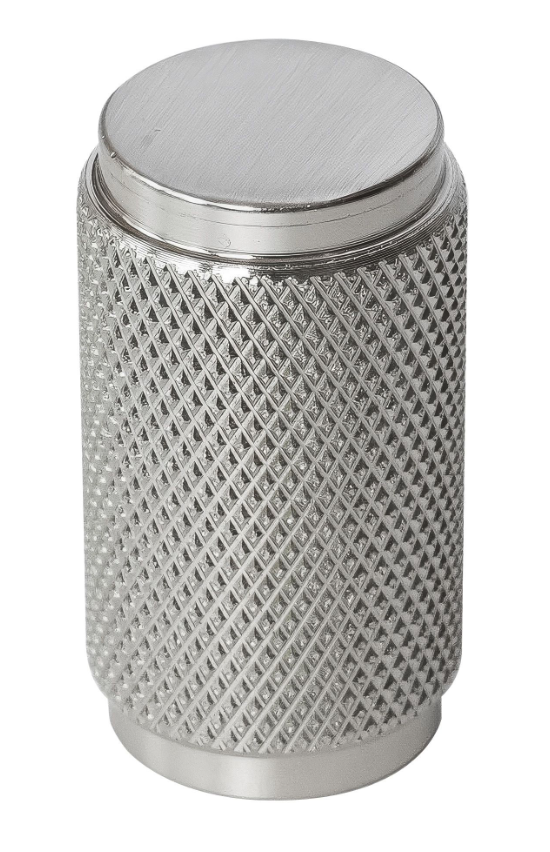 Part of knurled cabinet collection, overall depth of 30mm and 18mm diameter.