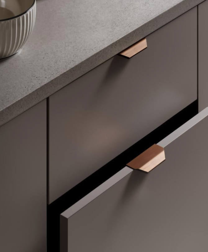 Cabinet Edge Pull Handle Vann is designed for the traditional opening of cupboard fronts with a minimum of visible elements.