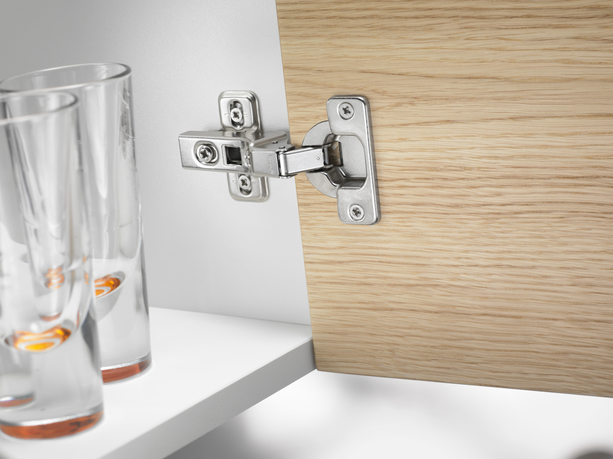 High-quality Blum concealed hinge made of steel for wooden cabinet doors.
