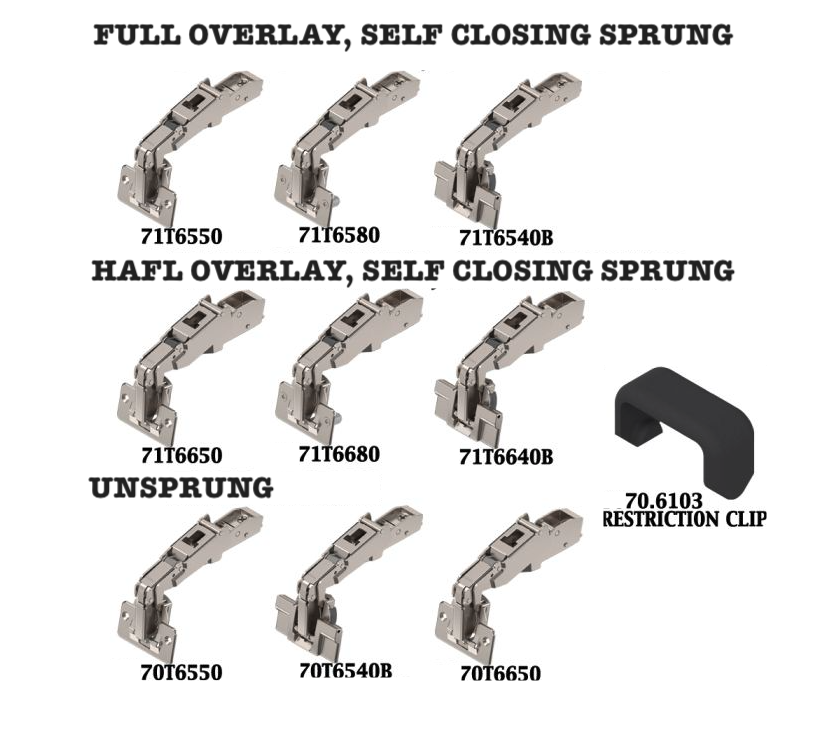 Blum 70T6650 UNSPRUNG 170 Degree Half Overlay Wide Angle Hinge