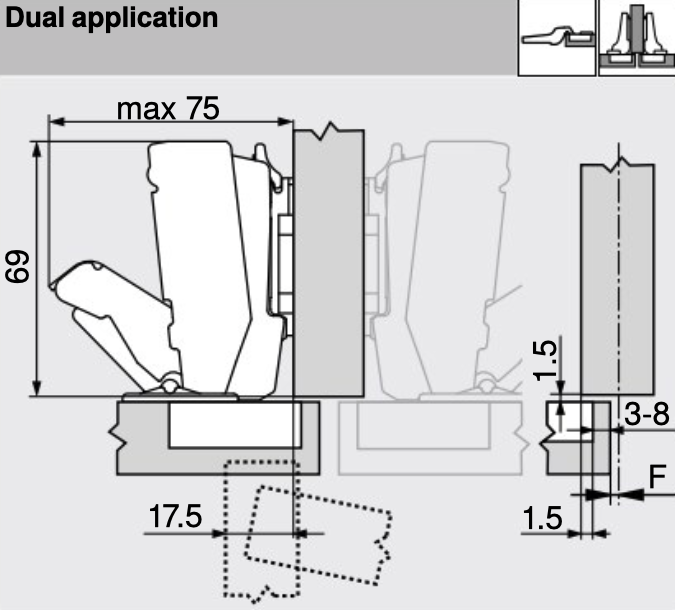 An unsprung hinge is required for push to open/handleless doors, and is used in conjunction with a Tip-On device.