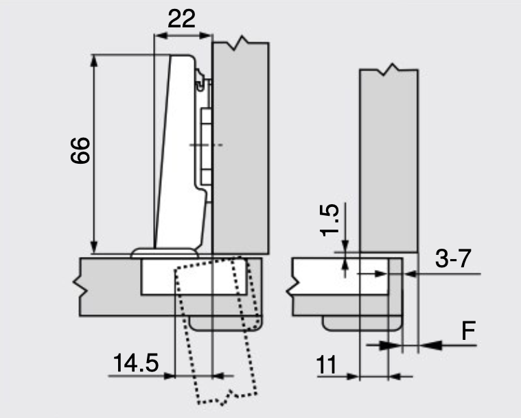 BLUM 71B9590 INSERTA Soft Close 95° Thick Door Overlay Profile Hinge