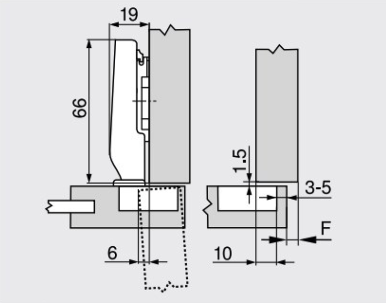 Depth adjustment: + 3/- 0,5 mm, convenient with spiral screw