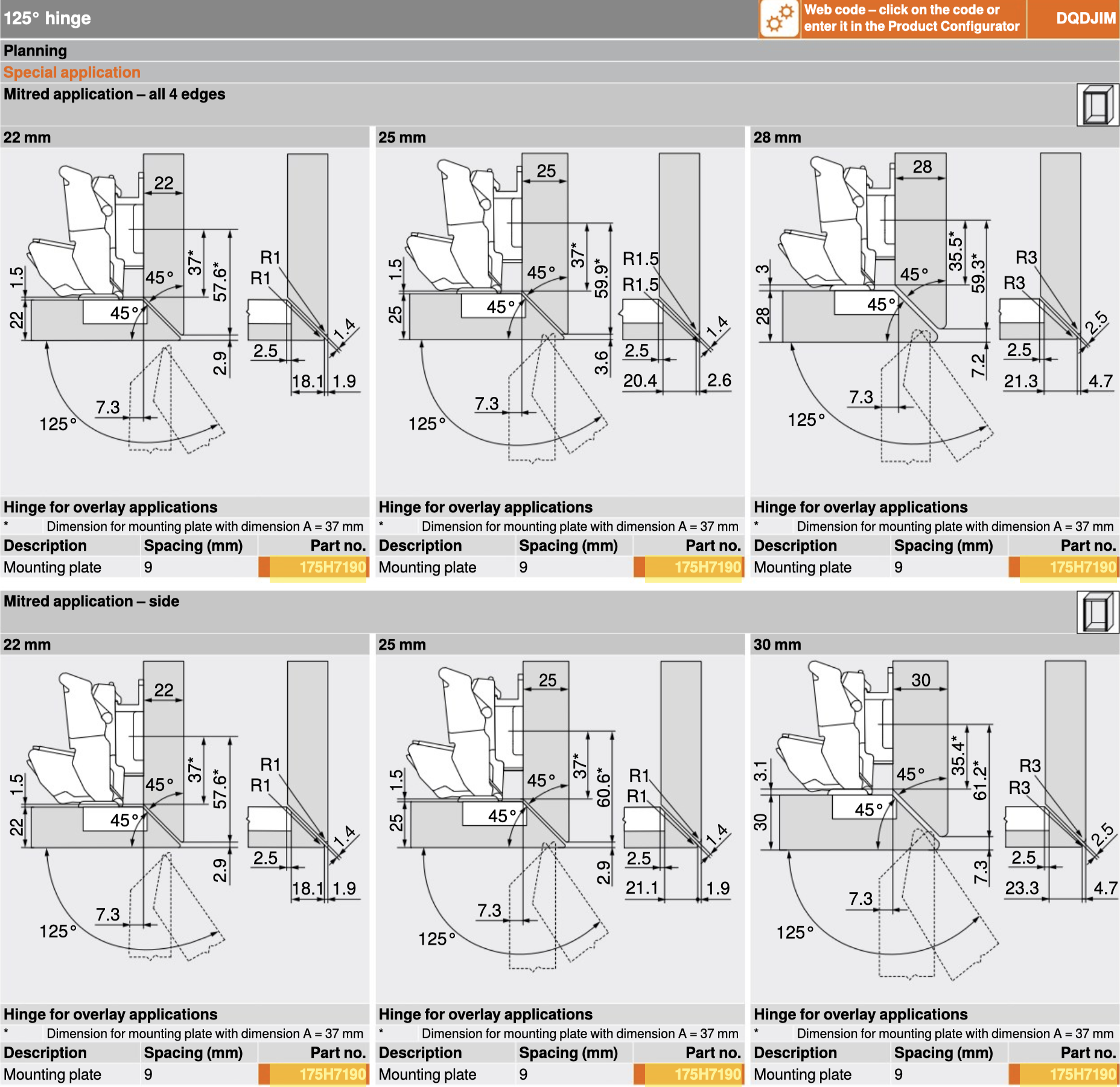 Designed for 9mm spacing, making it the preferred choice for converting 155° and 170° dual wide-opening hinges to inset applications.