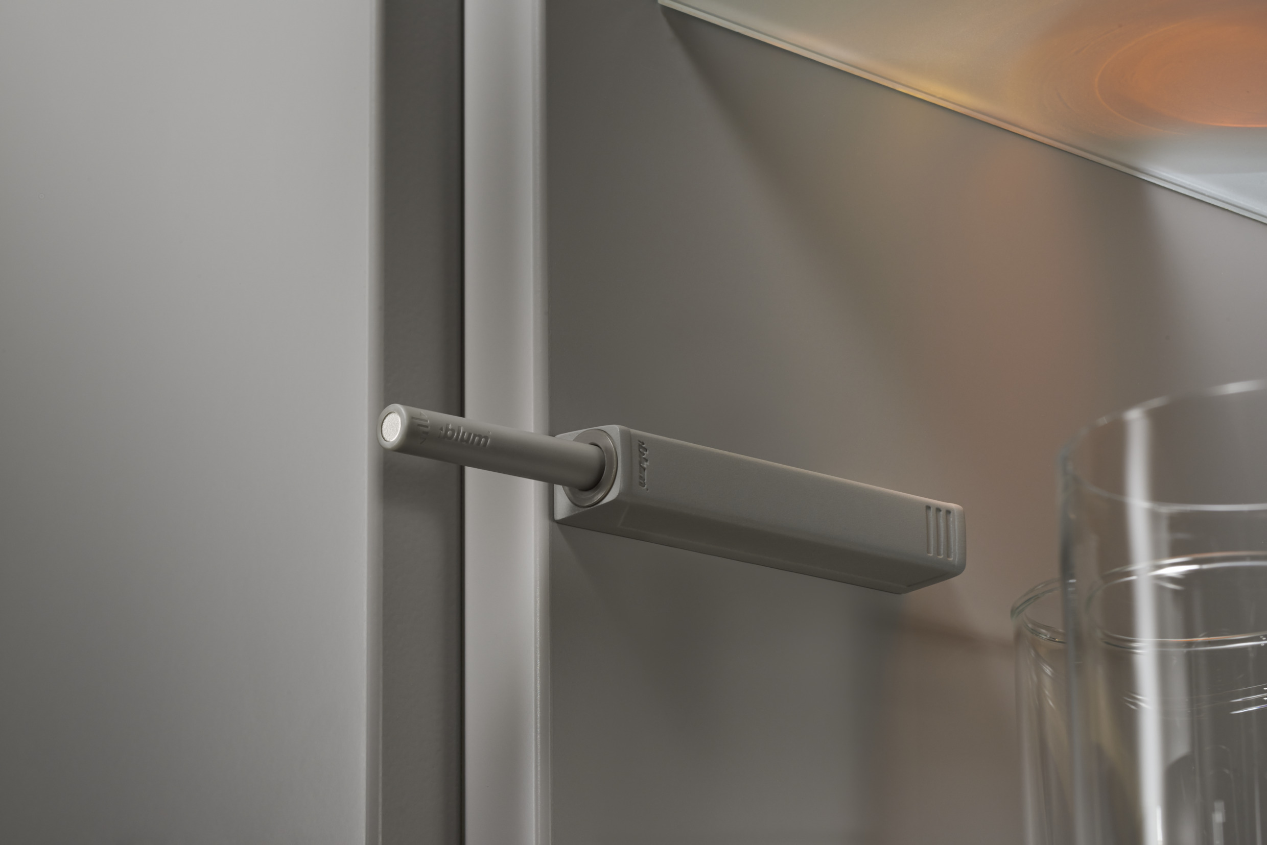 Handle-less fronts open at a single touch with the TIP-ON mechanical opening system by Blum.