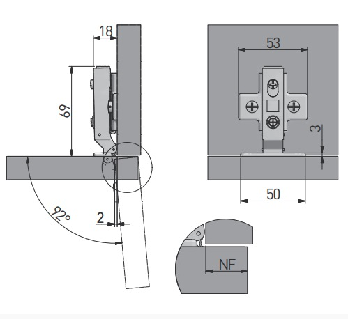GTV Soft Close Full/Half Overlay/Inset Mini 26 mm Kitchen Cupboard 90 Degree Hinge