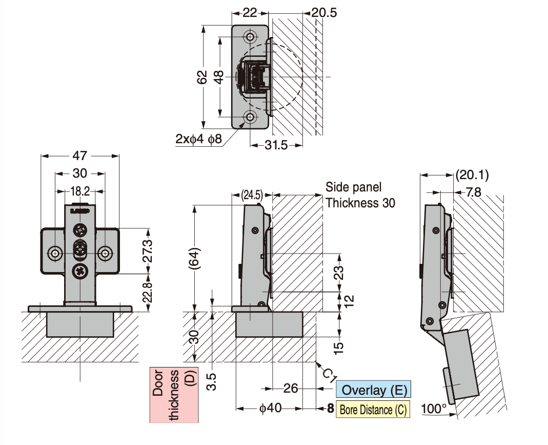 Sugatsune Medium Duty Concealed Cabinet Sprung Hinge Full Overlay – 100°