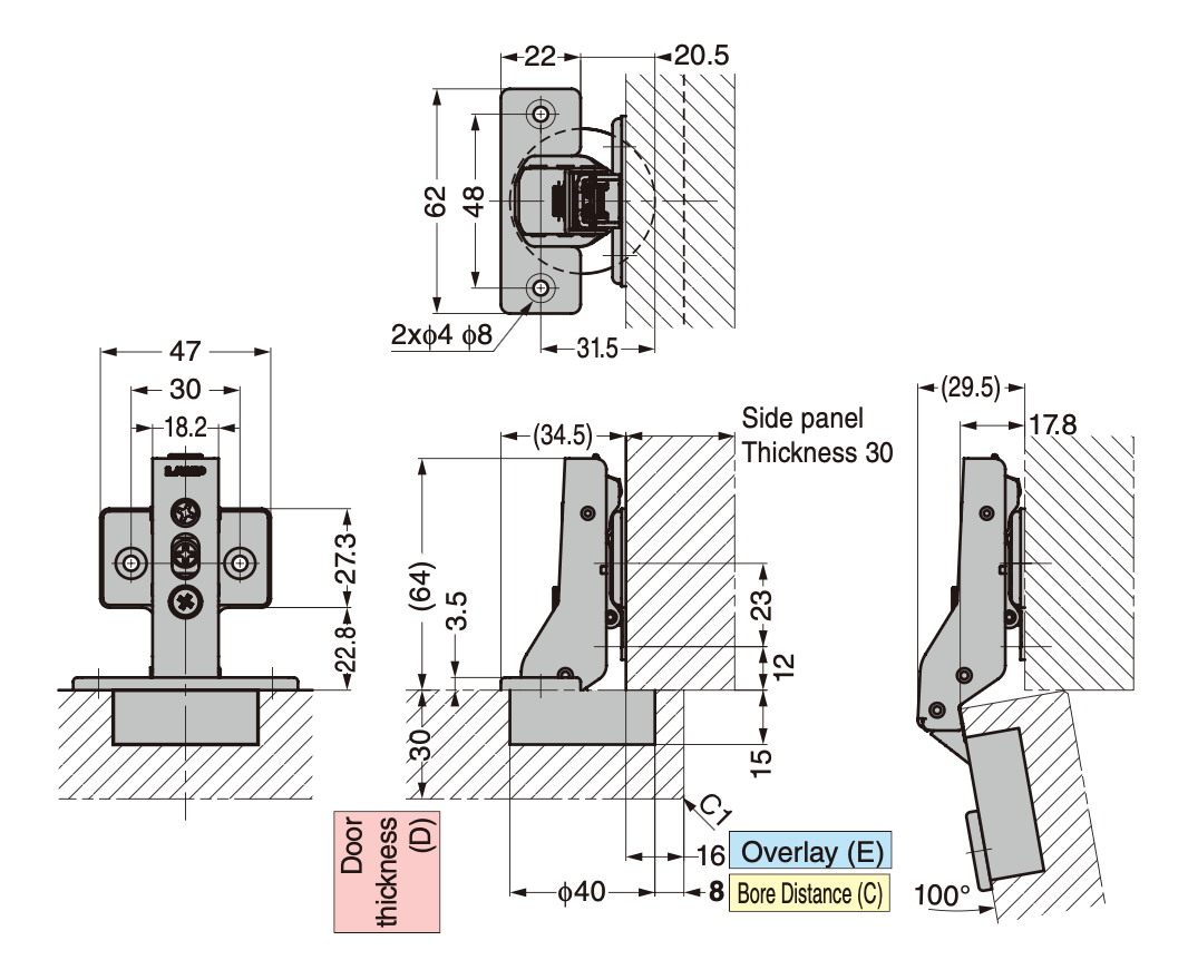 Sugatsune Medium Duty Olympia Concealed Duty Clip On Cabinet Sprung Hinge Half Overlay – 100°