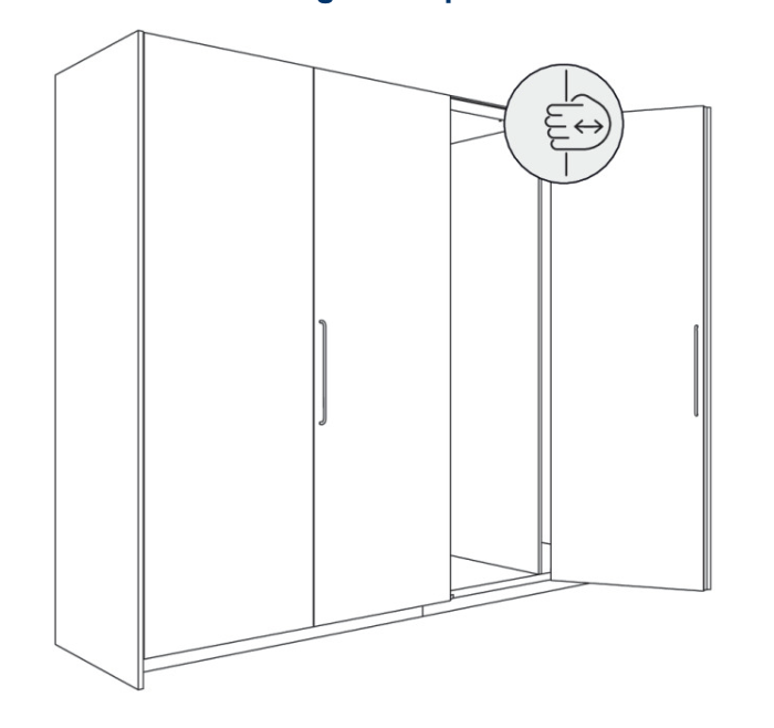 Pivoting doors, sliding them in at the side and parking them in the smallest of spaces – Hawa Folding Concepta III extends the design possibilities by another dimension, which is folding the doors beforehand. This leaves room for structures with a particularly large area, since two pairs of doors make it possible to have cabinet fronts measuring up to 3000 mm wide and 2700 mm high