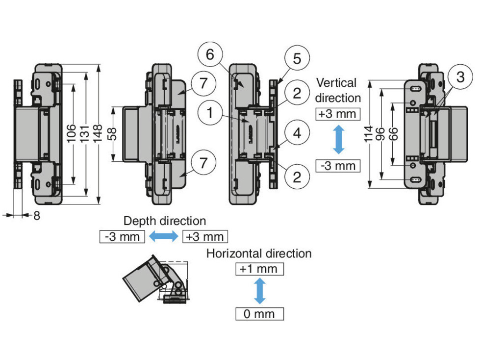 This award-winning hinge offers 3-way adjustment and exceptional durability, having passed a 300,000 open/close cycle test