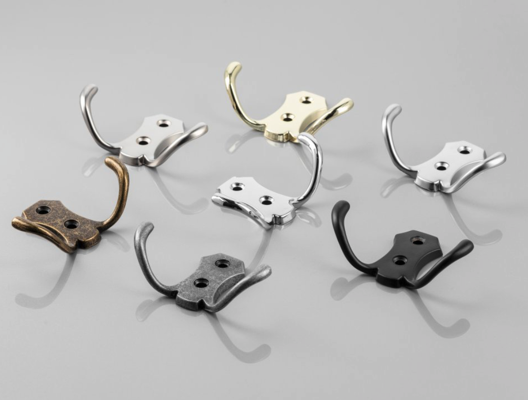 The collection of coat hooks will complement shabby chic, retro, and classic interiors.