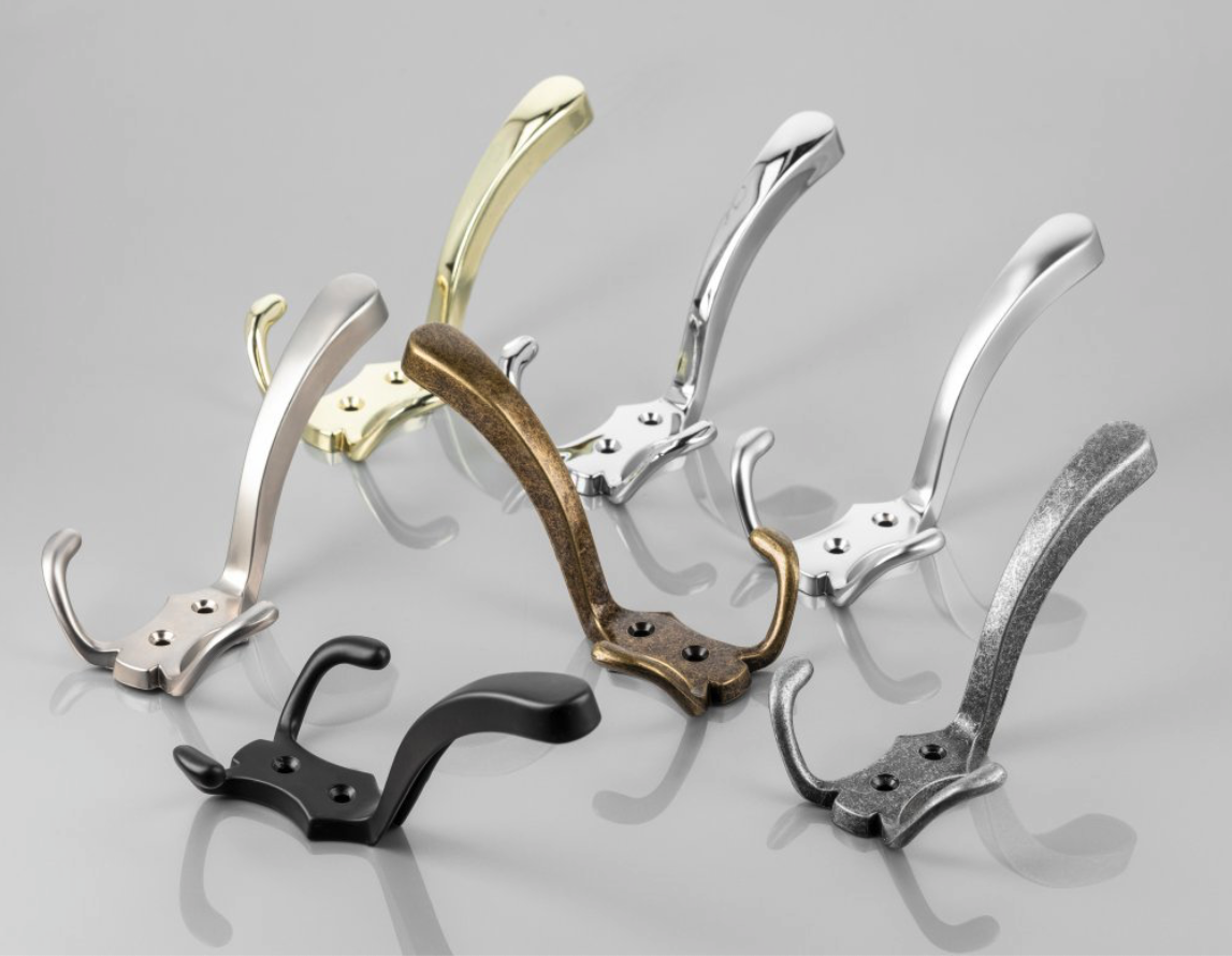 The collection of coat hooks will complement shabby chic, retro, and classic interiors.