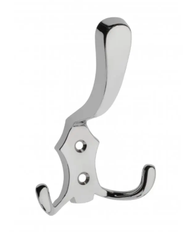 Triple Coat Hook Wall Door Mounted Clothes Hanger – Finish: Chrome