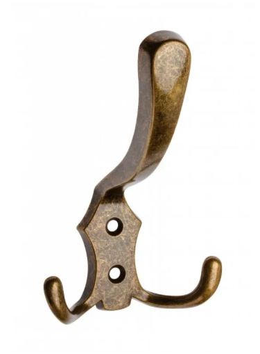 Triple Coat Hook Wall Door Mounted Clothes Hanger – Finish: Antique Brass