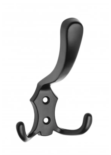 Triple Coat Hook Wall Door Mounted Clothes Hanger – Finish: Matt Black