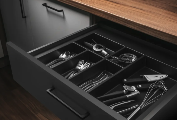 Cutlery Tray Plastic Black for Kitchen Cabinet