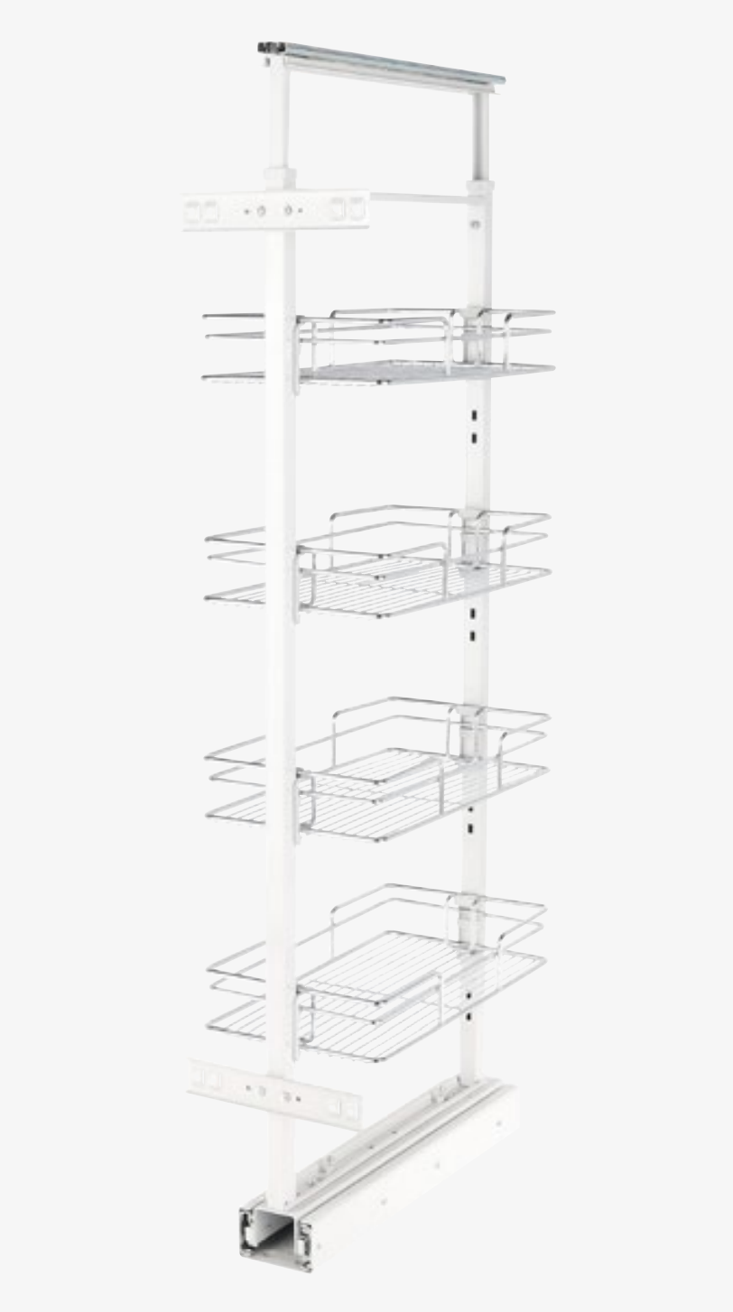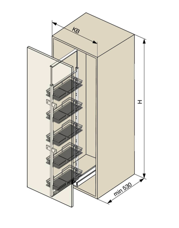 Compatible with either 4, 5 or 6 full-bottom baskets, depending on the unit height—for organised pantry access and optimal space efficiency. Built-in soft close and finish in desirable white colour.