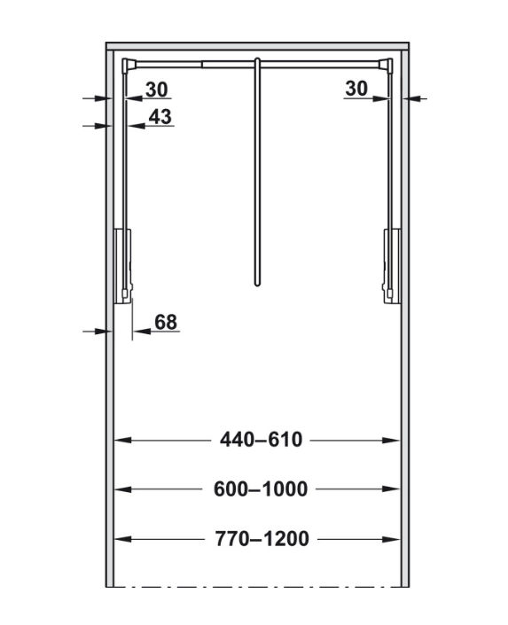 For Internal wardrobe width: 440-610mm, 600-1000mm, 770-1200mm