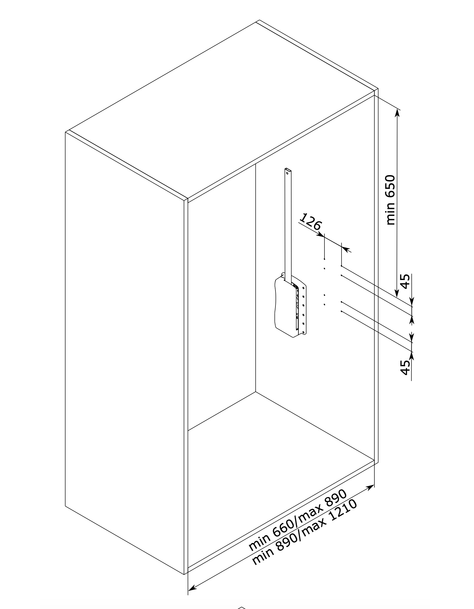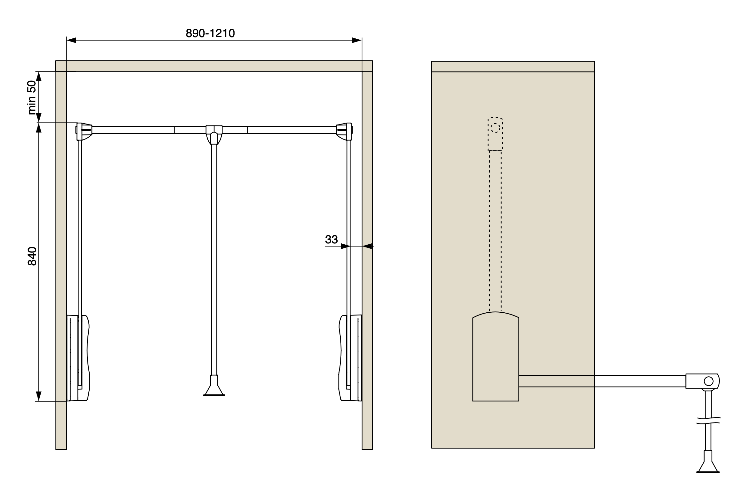 For Internal wardrobe width: 660-890mm, 890-1210mm